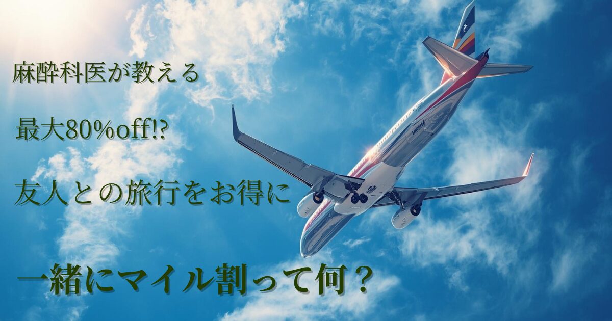 【初心者向け】効率重視の麻酔科医が教える、ANAマイルを貯める『最短2ステップ』 2026.04.14 マイル・ポイ活 麻酔科医フラッペ 麻酔科医フラッペの「ゆるお得ライフ」 友人との旅行も劇的にお得!ANA「いっしょにマイル割」で全員ハッピーになる方法 2026.04.06 マイル・ポイ活 麻酔科医フラッペ 麻酔科医フラッペの「ゆるお得ライフ」 1マイルが5円に化ける?ANAマイルの真骨頂「特典航空券」を使い倒すコツ 2026.03.25 マイル・ポイ活 麻酔科医フラッペ 麻酔科医フラッペの「ゆるお得ライフ」 「代えが効かない仕事だから」麻酔科医の私が、あえてANAを選ぶ理由 2026.03.11 マイル・ポイ活 麻酔科医フラッペ 麻酔科医フラッペの「ゆるお得ライフ」 【実質10%オフ】高速道路の「神制度」知ってる?麻酔科医が教えるETCマイレージの魅力 2026.02.23 節約・制度 麻酔科医フラッペ 麻酔科医フラッペの「ゆるお得ライフ」 QOLを下げない「ゆるポイ活」のススメ。効率重視の麻酔科医が教えるお得術ー自己紹介ー 2026.02.23 マイル・ポイ活 麻酔科医フラッペ 麻酔科医フラッペの「ゆるお得ライフ」